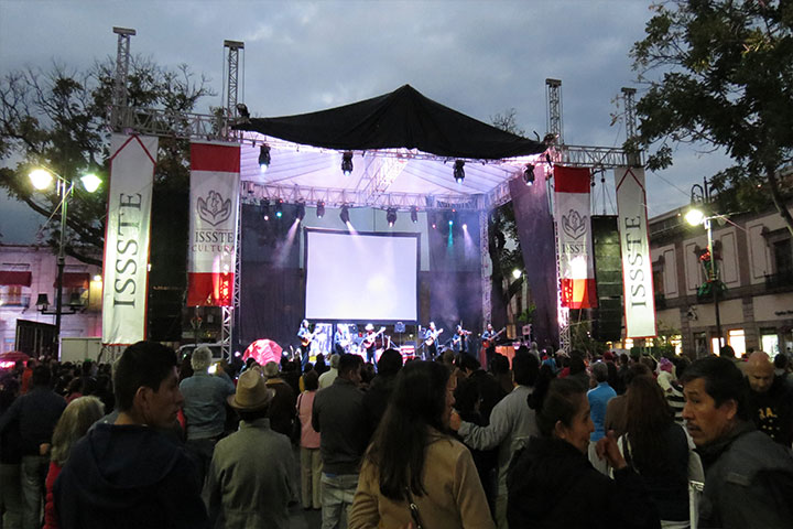 Este sábado, en la tarea de recuperar espacios públicos en la entidad dentro del Plan "Por Michoacán, Juntos lo Vamos a Lograr", en la Plaza Melchor Ocampo de Morelia, el Instituto de Seguridad y Servicios Sociales de los Trabajadores del Estado (ISSSTE), ofreció a los morelianos un Concierto Navideño.