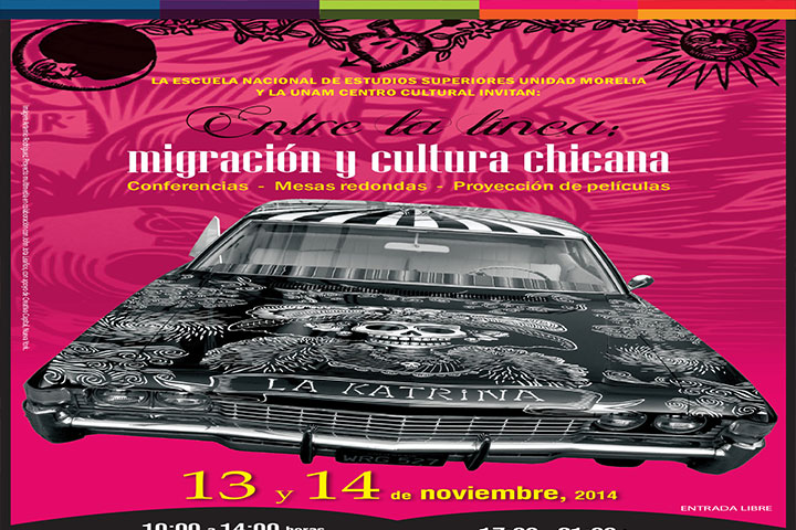 NOTICIAS 09/11/2014Migración y cultura chicana, temas del encuentro en la UNAM Con la finalidad de abrir un espacio donde se estimulen conversaciones y reflexiones en torno a temas de migración, el Centro Cultural UNAM en Morelia y la Escuela Nacional de Estudios Superiores Unidad Morelia, organizan el encuentro titulado Entre la línea: migración y cultura chicana.