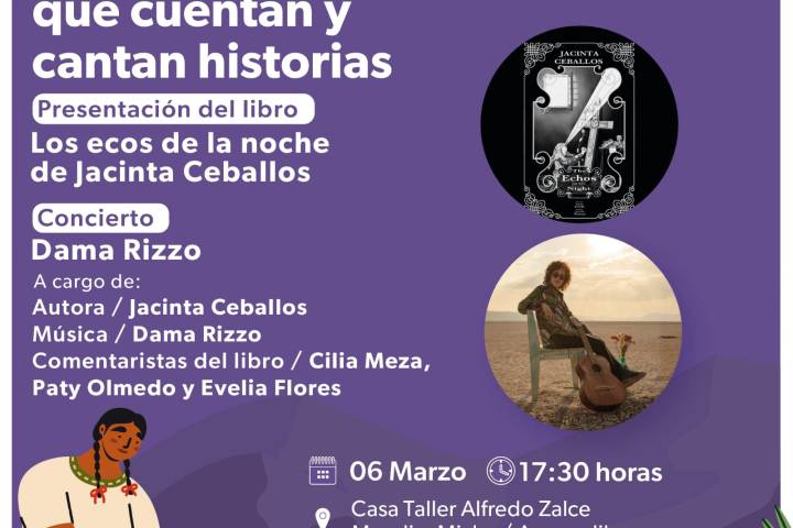 NOTICIAS 06/03/20258M: Mujeres contarán y cantarán historias en la Casa Taller Alfredo Zalce En el marco del Día Internacional de la Mujer, la Secretaría de Cultura de Michoacán (Secum) invita al evento "Mujeres que cuentan y cantan historias", que reunirá literatura y música en la Casa Taller Alfredo Zalce, el próximo jueves 6 de marzo a las 17:30 horas.