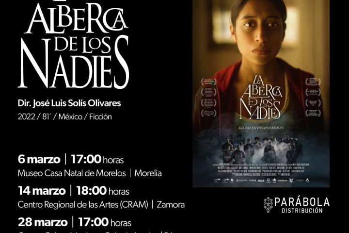 NOTICIAS 06/03/2025Se proyectará "La Alberca de los Nadies", filme sobre migración El largometraje "La Alberca de los Nadies", del director José Luis Solís Olivares, tendrá proyecciones este mes en Morelia, Pátzcuaro y Zamora, cinta que ha sido seleccionada en 20 festivales nacionales e internacionales, con una gran recepción por parte de la crítica y el público.