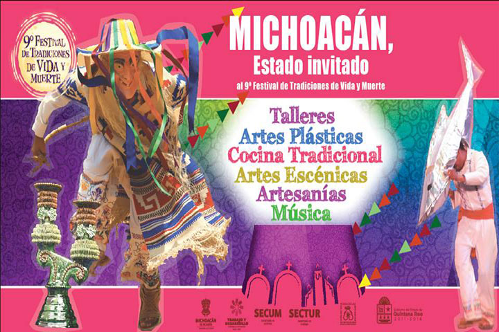 NOTICIAS 27/10/2014Michoacán, invitado de honor del 9° Festival de Tradiciones Vida y Muerte en XcaretDel 30 de octubre al 2 de noviembre como invitado de honor, Michoacán mostrará la riqueza de sus tradiciones, arte, gastronomía y cultura en el 9° Festival de la Vida y la Muerte a celebrarse en el Parque temático de Xcaret, en Quintana Roo, actividad apoyada por el Gobierno del Estado de Michoacán a través de la Secretaría de Cultura y de la Casa de las Artesanías.