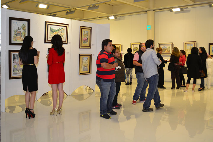 El maestro Nicolás de la Torre Calderón inauguró su exposición de acuarelas titulada Michoacán y Europa, que se exhibe en el Centro Cultural y de Convenciones Tres Marías.