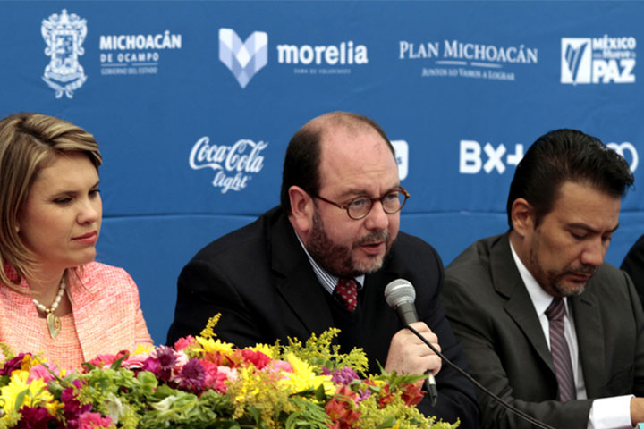 En presencia de Ricardo Cayuela Gally, director general de Publicaciones, así como el secretario de Cultura, Marco Antonio Aguilar Cortés en representación del gobernador del estado, Salvador Jara Guerrero, e Iván Arturo Pérez Negrón supliendo la presencia del alcalde de Morelia; Raúl Olmos, director de Promoción y Fomento Cultural dio por iniciado el mensaje de bienvenida, resaltando la importancia de la coordinación entre la SECUM y ... Ver más...