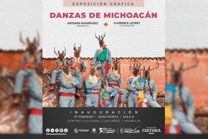 NOTICIAS 19/02/2025Centro Cultural Clavijero presentará exposición de danzas tradicionales La exposición Danzas de Michoacán, de Florence Leyret y Artemio Rodríguez, se inaugurará el próximo 27 de febrero a las 18:00 horas en la sala 8 del Centro Cultural Clavijero (CCC). Una oportunidad única para adentrarse en la riqueza cultural y espiritual de las danzas tradicionales de Michoacán.