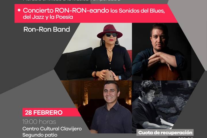 NOTICIAS 26/02/2025Noche de blues, jazz y poesía en el ClavijeroLa Secretaría de Cultura de Michoacán (Secum) invita a disfrutar de una noche de blues, jazz y poesía con la Ron Ron Band, que se presentará el viernes 28 de febrero en el Centro Cultural Clavijero, como parte del ciclo De Sala en Sala.