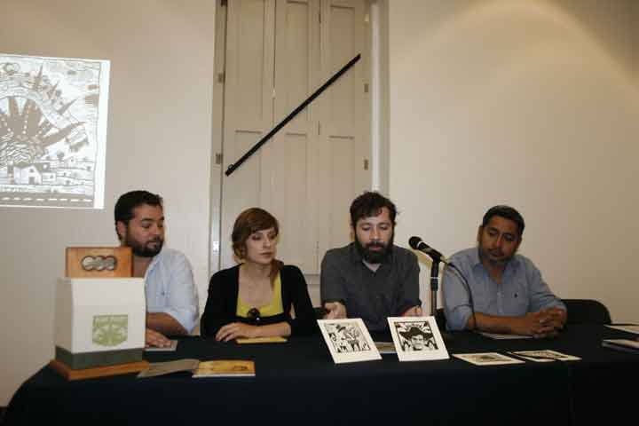 Mizraím Cárdenas, Celeste Jaime, Ángel Pahuamba y Cristóbal Tavera, artistas de la gráfica; Jorge Pérez, Emilio Vieyra, Guadalupe Pérez... Ver más...