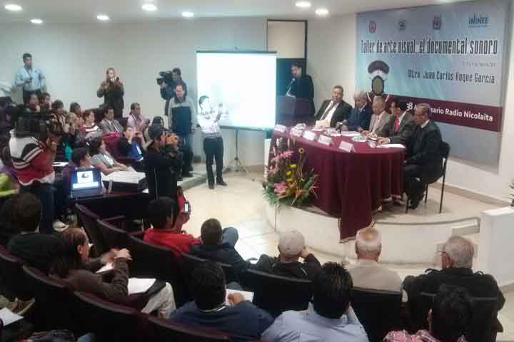 Empleados y colaboradores de Radio Nicolaita participaron en el "Taller de Arte Visual, el Documental Sonoro", que tiene como finalidad capacitar a los trabajadores y público interesado en los temas de radio-reportajes y alcances del sonido como elemento estimulante de la imaginación en la audiencia.