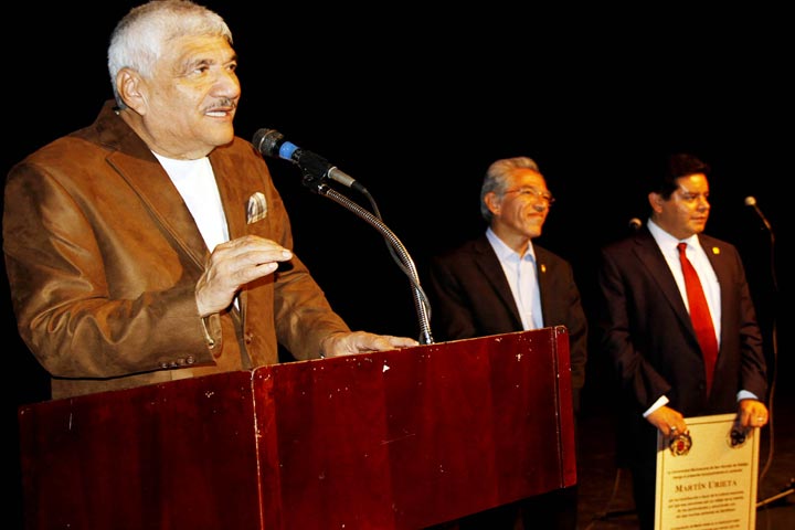 NOTICIAS 30/11/2013Homenaje de la UMSNH a Martín UrietaUno de los mayores exponentes de la canción mexicana actual gracias a obras emblemáticas de la cultura popular, como Urge, Mujeres divinas y ¿Qué de raro tiene?, Martín Urieta, recibió un homenaje por parte de la Universidad Michoacana de San Nicolás de Hidalgo (UMSNH), en el que el rector Salvador Jara Guerrero, destacó que las aportaciones de Urieta son tan relevantes para el imaginario nacional como las que hizo en su momento José Alf... Ver más...