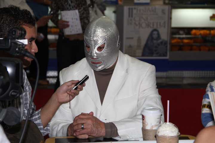 NOTICIAS 21/10/2013"El hijo del Santo" llega al FICM con "El hombre detrás de la máscara"Entre los invitados especiales a la alfombra roja del proyecto incluido en la sección de largometraje mexicano del Festival Internacional de Cine de Morelia (FICM), "Penumbra" de Eduardo Villanueva, se encontró el "Hijo del Santo", personaje de los cuadriláteros que atrajo la atención de los reflectores para platicar sobre el documental "El hombre detrás de la máscara" que este año también se encuentra dentro del programa del festival.