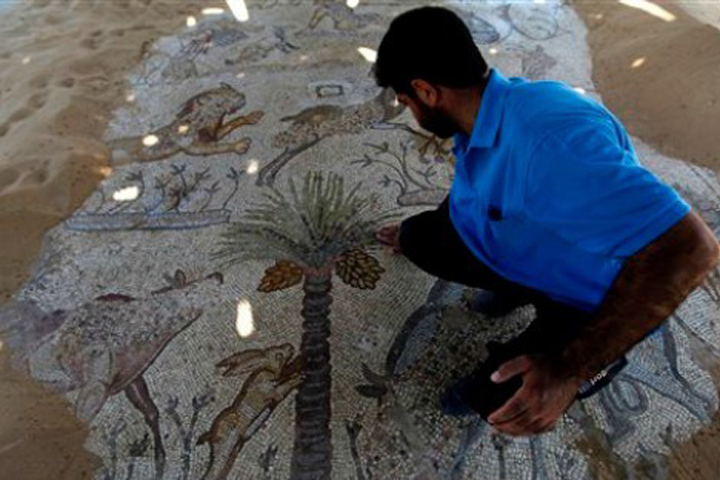 NOTICIAS 20/08/2013Arqueólogos luchan por rescate de ruinas en GazaLas ruinas de este antiguo complejo se encuentran en las dunas frente al mar, un mundo alejado del ruido y el bullicio de la ciudad de Gaza. En el cielo, las aves compiten por espacio con las cometas que vuelan los niños desde una granja cercana.