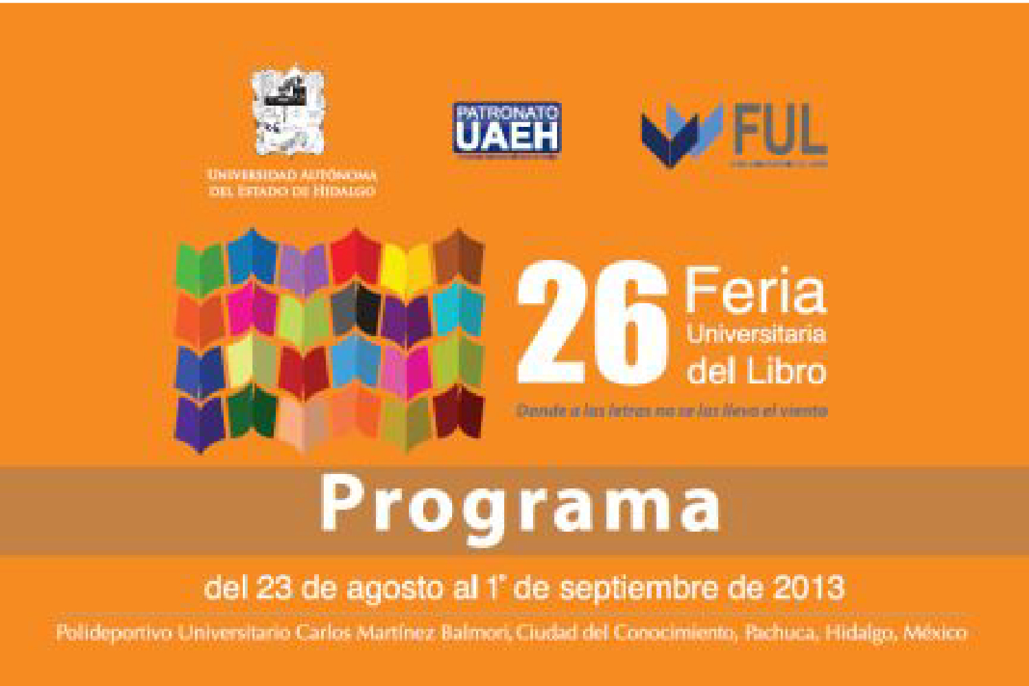 NOTICIAS 14/08/2013Pormenores de la Feria Universitaria del Libro FULLa Feria Universitaria del Libro (FUL) es la actividad cultural, editorial y artística más importante en la entidad que organizan la Universidad Autónoma del Estado de Hidalgo y su Patronato, con el propósito de fomentar y promover la lectura, iniciativa realizada permanentemente desde hace 26 años.