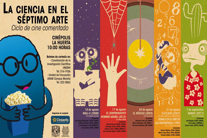 Con la finalidad de mantener al público informado sobre los alcances de la ciencia, la Coordinación de la Investigación CientÃfica de la Universidad Michoacana de San Nicolás de Hidalgo (UMSNH) en coordinación con la Universidad Nacional Autónoma de México (UNAM) Campus Morelia y el complejo Cinépolis, iniciarán por tercer año consecutivo el ciclo de cine comentado "La Ciencia en el Séptimo Arte", este sábado 10 de agosto.