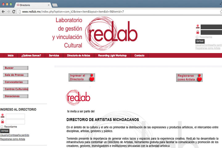 RedLab, Gestión y Vinculación Cultural A.C., invita a las y los creadores de la entidad a inscribirse de manera gratuita en el Directorio de Artistas de Michoacán, herramienta virtual de promoción que se aloja en el sitio web www.redlab.mx.
