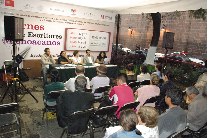 Compartir la lectura de textos poéticos y narrativos y establecer un diálogo con el público asistente para fomentar la retroalimentación sobre las obras escritas y el quehacer de sus autores, es premisa de las actividades realizadas en las charlas "Viernes de escritores", promovidas por la Sociedad Michoacana de Escritores en espacios al aire libre de esta ciudad.