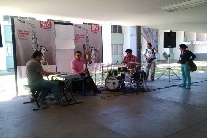 El pasillo principal de Ciudad Universitaria fue el escenario para la presentación de Fernando Mendoza Jazz Trío como parte de la extensión de las actividades del Jazztival 2013 que termina el día de hoy.