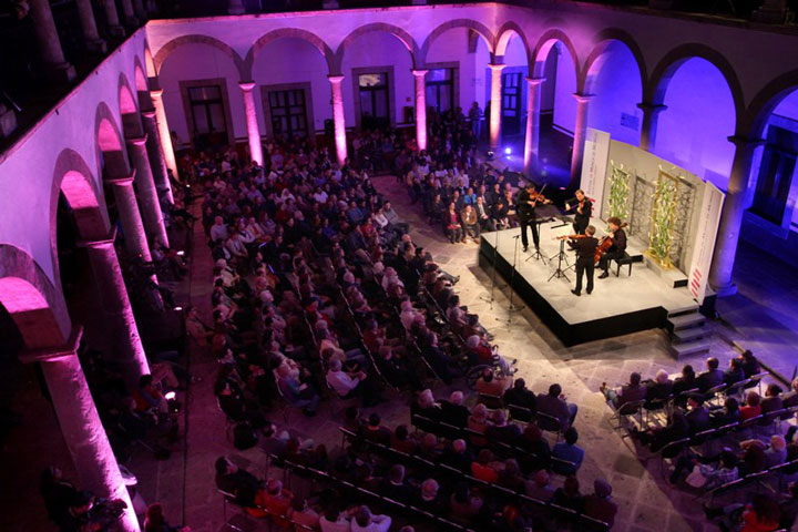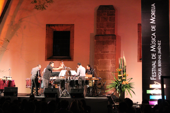 NOTICIAS 21/11/2012Versus 8, se presenta dentro las actividades del Festival de Música de MoreliaEn su quinto día de actividades efectuadas en la capital del estado, el Festival de Música de Morelia "Miguel Bernal Jiménez", presentó de manera gratuita y abierto a todo el público, a Versus 8, cuarteto de percusiones que exhibió su propuesta en el segundo patio del Centro Cultural Clavijero.