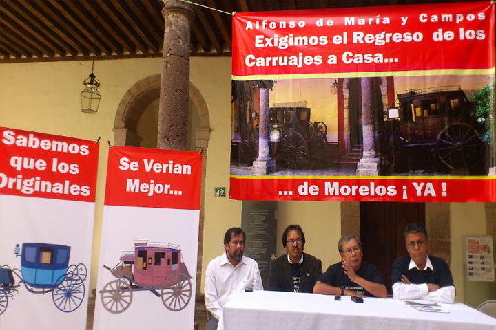 NOTICIAS 21/11/2012Exigen públicamente el regreso de las Carrosas al Museo Sitio Casa MorelosUna vez más, tanto trabajadores del Museo Sitio Casa Morelos, así como su director Jaime Reyes Monroy y vecinos del inmueble y sus cercanías, realizaron una llamado público a Alfonso de María Campos, director general del Instituto Nacional de Antropología e Historia (INAH), así como a la delegada de dicha institución en Michoacán, Lizbeth Aguilera, para que se comprometan y regresen lo más pronto posible las dos carrosas que desde los a... Ver más...