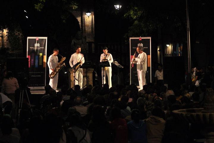 NOTICIAS 23/11/2012Andariegos somos en la Plaza de la Rosas andamos: Sigma ProjectAndariegos somos en la Plaza de la Rosas andamos? y uno se topa con la sorpresa de un cuarteto de saxofones. Sí, concierto al aire libre, entre el sol y la sombra, entre el asombro y la bienvenida a la música de concierto en oído y boca de todos.