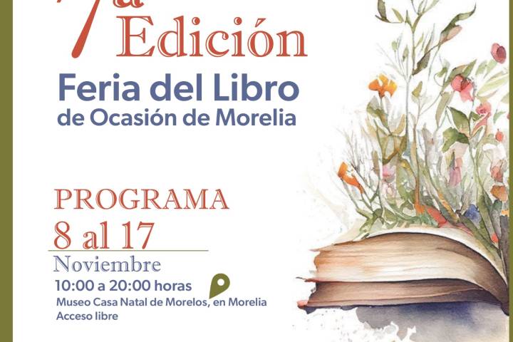 NOTICIAS 05/11/2024Todo listo para la Feria del Libro de Ocasión en Casa Natal de MorelosEn el marco del Día Nacional del Libro, fecha que se eligió para honrar el natalicio de Sor Juana Inés de la Cruz como máxima exponente de la literatura mexicana, la Secretaría de Cultura de Michoacán (Secum) invita a la séptima Feria del Libro de Ocasión, a cargo de la Asociación de Libreros Michoacanos de Ocasión, que se realizará del 8 al 17 de noviembre en el Museo Casa Natal de Morelos.
