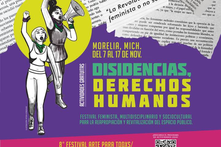 NOTICIAS 07/11/2024Con más de 38 artistas, este jueves inicia el Festival de Arte Para Todxs/DisidenciasTodo el público tiene una invitación para asistir al octavo Festival de Arte Para Todxs/Disidencias, Derechos Humanos, que es organizado por Contenedor de Arte y cuya programación incluye talleres, presentaciones, conferencias, una mesa de diálogo y una convocatoria literaria dirigida a mujeres escritoras, del 7 al 17 de noviembre en siete sedes en Morelia, tales como el Centro Cultural Clavijero y en el que participarán 38 artistas.