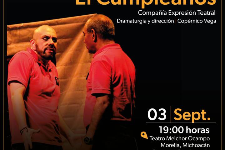 NOTICIAS 03/09/2024Diviértete en grande con esta comedia en el Teatro Melchor OcampoEn un ambiente de comicidad, los conceptos de la amistad y de la ética se pondrán en juego durante la obra teatral El Cumpleaños, que la Secretaría de Cultura de Michoacán te invita a disfrutar el martes 3 de septiembre en el Teatro Melchor Ocampo a las 19:00 horas, a cargo de la compañía Expresión Teatral, con dramaturgia y dirección de Copérnico Vega.