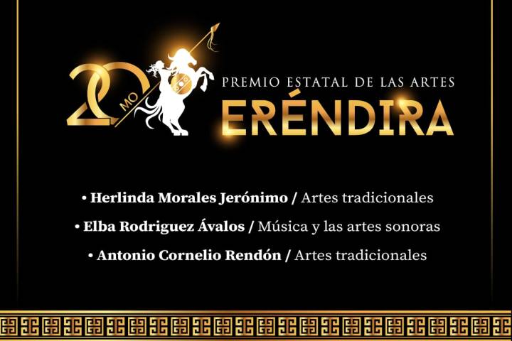 NOTICIAS 07/09/2024Anuncia Secum personas galardonadas del Premio Eréndira 2024El Gobierno de Michoacán, a través de la Secretaría de Cultura de Michoacán (Secum), dio a conocer a las personas ganadoras del Premio Estatal de las Artes Eréndira 2024, en el marco del vigésimo aniversario de este importante galardón.