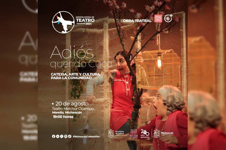 NOTICIAS 20/08/2024Dedicará Secum función a infancias en Muestra Estatal de TeatroLa Secretaría de Cultura de Michoacán (Secum) invita a disfrutar de la función de la obra Adiós querido Cuco, de la compañía Catexia, Arte y Cultura para la Comunidad, que se presentará este martes 20 de agosto a las 19:00 horas, en el Teatro Melchor Ocampo, en el marco de la Muestra Estatal de Teatro Michoacán 2024.