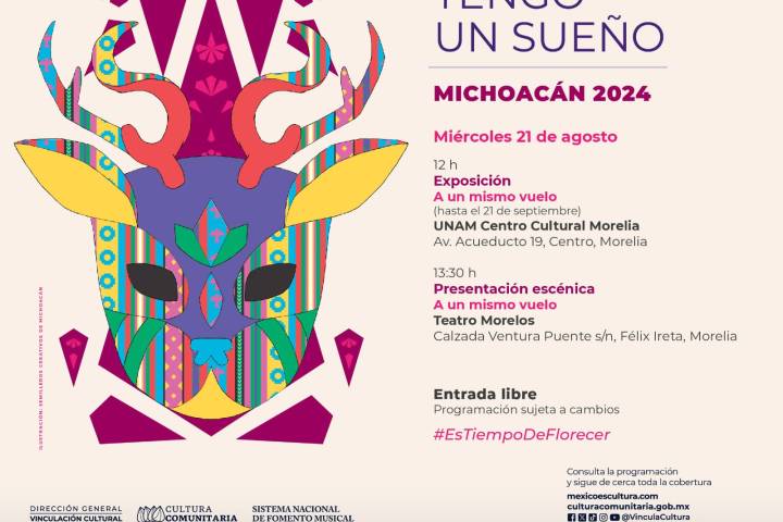 NOTICIAS 20/08/2024 Infancias de Semilleros Creativos mostrarán su riqueza cultural en Festival Tengo un Sueño Niñas, niños y jóvenes de Michoacán ya se encuentran listos para el encuentro de los Semilleros Creativos en el Estado, que se realizará el miércoles 21 de agosto, como parte de los 27 eventos estatales en el país que forman parte del Festival Tengo un Sueño 2024.