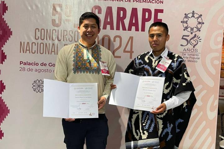 NOTICIAS 30/08/2024Artesanos michoacanos ganan tercer lugar y mención en Concurso Nacional del Sarape En la quinta edición del Concurso Nacional del Sarape, organizado por el Fondo Nacional para el Fomento de las Artesanías (Fonart), dos artesanos michoacanos de las localidades de Santa Clara del Cobre y Crescencio Morales resultaron ganadores con las piezas que presentaron hechas de lana tejidas en telar de pedal.