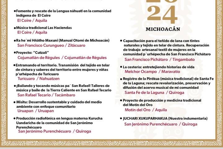Los proyectos pertenecen a los pueblos Otomí, Nahua, Purépecha y a la región de la Tierra Caliente y se desarrollarán en comun... Ver más...
