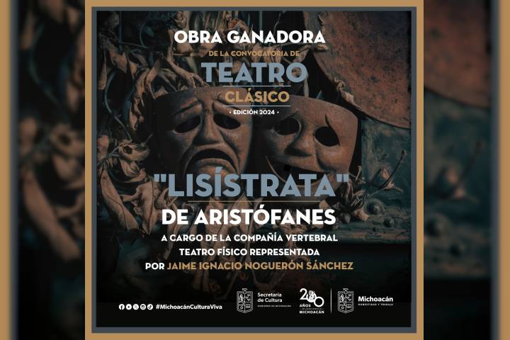 NOTICIAS 16/08/2024 Gana la obra Lisístrata, primera convocatoria de Teatro Clásico en MichoacánLa Secretaría de Cultura de Michoacán (Secum) anunció la obra ganadora de la primera convocatoria de Teatro Clásico en Michoacán 2024, en la que participaron cuatro compañías teatrales.