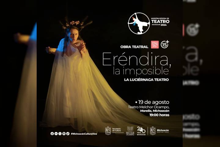 NOTICIAS 19/08/2024Arranca este lunes Muestra Estatal de Teatro con la obra Eréndira, la imposibleEste lunes 19 de agosto, inicia la Muestra Estatal de Teatro, a cargo de la Secretaría de Cultura de Michoacán (Secum), con la obra "Eréndira, la imposible", el teatro Melchor Ocampo, a las 19:00 horas, con acceso gratuito para todo el público.