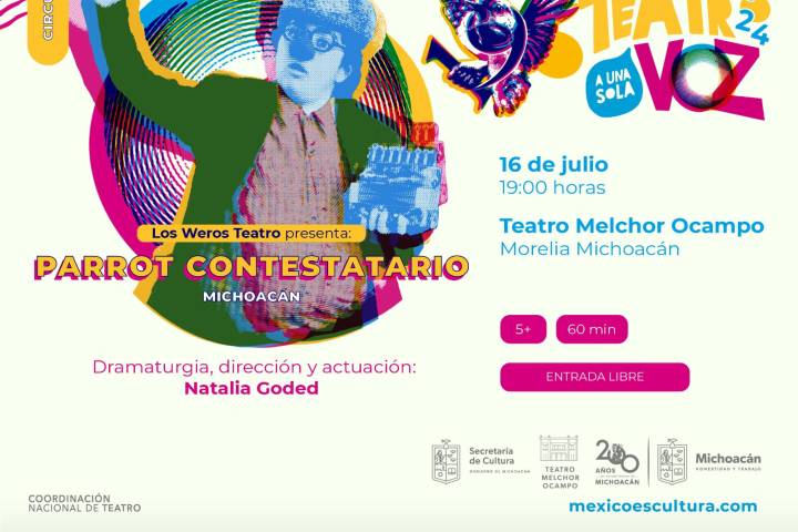 NOTICIAS 17/07/2024 Fascina Parrot Contestatario del Festival de MonólogosEl unipersonal michoacano Parrot Contestatario fascinó al público con sus respuestas a las preguntas más simples, difíciles o que comúnmente nadie se atrevería a plantear, durante su presentación en el Teatro Melchor Ocampo. Una obra que no fue escrita y seleccionó el 19 Festival de Monólogos, Teatro a una Sola Voz, de entre cerca de 200 trabajos de todo el país.