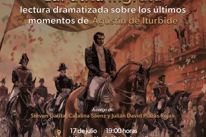 NOTICIAS 16/07/2024Conoce más sobre los últimos momentos de Agustín de Iturbide con esta lectura dramatizadaAgustín de Iturbide, quien nació en la ciudad de Valladolid (hoy Morelia) en 1783 y fue el primer emperador del México independiente, es la figura central de "La Patria Ingrata", lectura dramatizada a cargo de Steven Garita, Catalina Sáenz y Julián David Plazas Rojas que la Secretaría de Cultura de Michoacán (Secum) te invita a disfrutar en el Museo del Estado, mañana miércoles 17 de julio, a las 19:00 horas.
