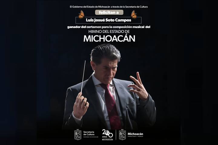 NOTICIAS 06/06/2024Anuncia Secum al ganador de la composición musical del himno de MichoacánLa Secretaría de Cultura de Michoacán (Secum) dio a conocer los resultados de la convocatoria para la creación de la composición musical del Himno Oficial del Estado de Michoacán, en el marco de la conmemoración de los 200 años de la entidad.