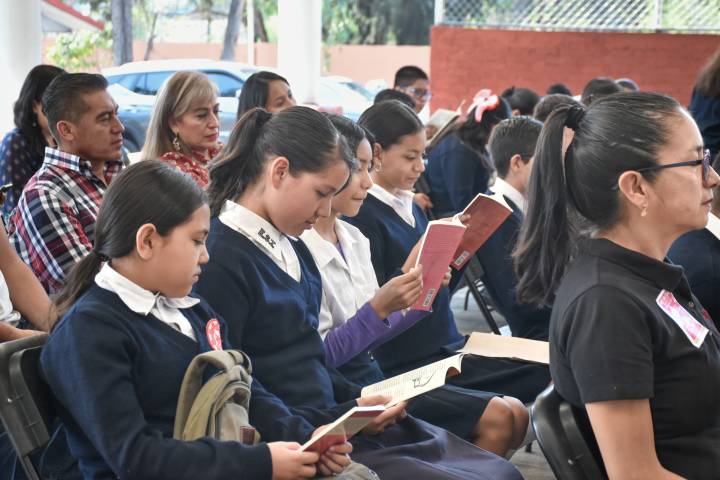 NOTICIAS 08/06/2024 Con libros, talleres y hip hop, Secum fomenta la lectura entre estudiantesCon libros, talleres, poesía y hip hop para niñas, niños y adolescentes, la Secretaría de Cultura de Michoacán (Secum) fomentó la lectura entre estudiantes de la Secundaria Técnica 99, en el marco de la Feria del Libro Escolar y Comunitaria Un Viaje entre Páginas, que se realiza en coordinación con la Secretaría de Educación del Estado (SEE) y el Fondo de Cultura Económica (FCE).