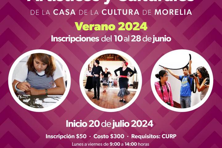 NOTICIAS 10/06/2024 Secum lanza talleres inclusivos en la Casa de la Cultura de MoreliaCon 5 actividades especiales dirigidas a personas con discapacidad y primera infancia, la Secretaría de Cultura del Estado (Secum) oferta cerca de 120 talleres artísticos para todas las edades, en el próximo curso de verano de la Casa de la Cultura de Morelia. Las inscripciones darán inicio el próximo lunes 10 de junio.