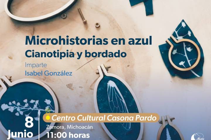 NOTICIAS 03/06/2024La cianotipia y el bordado, unidos en un taller de la Secum pensado en tiA través del Centro Regional de las Artes de Michoacán (CRAM), ubicado en Zamora, la Secretaría de Cultura de Michoacán (Secum) pone a tu disposición el taller de cianotipia y bordado Micro historias en azul, dirigido a todas las personas que quieran comunicar y compartir un trabajo estético, que se llevará a cabo en el Centro Cultural Casona Pardo, el 8 de junio de 11:00 a 13:00 horas, y que será impartido por Isabel González.