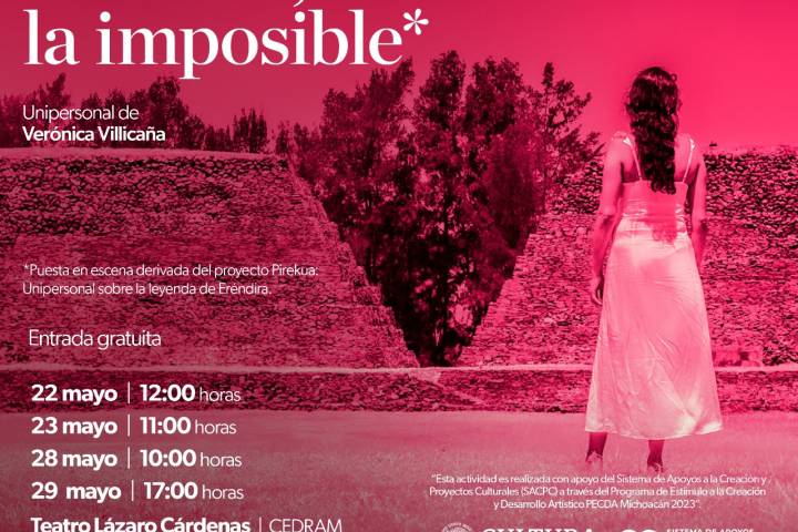 NOTICIAS 21/05/2024 Secum invita a vivir la historia de Eréndira con esta obra de teatroLa SecretarÃa de Cultura de Michoacán (Secum) te invita al Centro Dramático de Michoacán (Cedram), en Pátzcuaro, para que disfrutes durante mayo alguna de las cuatro funciones de Eréndira, la imposible; el unipersonal de Verónica Villicaña, beneficiada del Programa de EstÃmulos a la Creación y Proyectos Culturales Michoacán 2023, en la categorÃa de creadores con trayectoria.