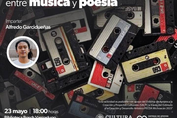 NOTICIAS 23/05/2024Saborea esta charla sobre música y poesÃa en la Biblioteca Bosch-VargaslugoComo rÃos subterráneos que tienen un mismo origen, que se separan para unirse y entremezclarse después, la música y la poesÃa serán las protagonistas de la charla que la SecretarÃa de Cultura de Michoacán (Secum) te invita a escuchar en la Biblioteca Bosch-Vargaslugo, este jueves 23 de mayo a las 18:00 horas.