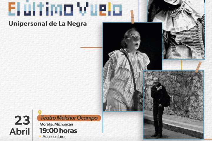 NOTICIAS 22/04/2024Llega monólogo de La Negra al Melchor Ocampo por sus 50 años de trayectoriaLa SecretarÃa de Cultura de Michoacán (Secum) te invita a la obra teatral El último vuelo, unipersonal, en el que la actriz Ma. de Lourdes Esquivel, mejor conocida como La Negra, cuenta, recuenta y aquilata cinco décadas de trayectoria profesional como actriz, teatrera, poeta, docente, activista, pensadora y mujer. La cita es mañana martes 23 de abril a las 19:00 horas al teatro Melchor Ocampo.