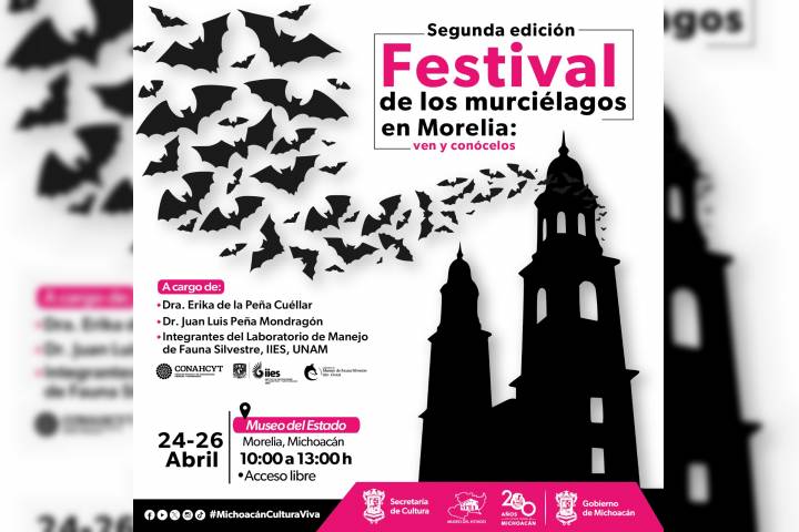 NOTICIAS 23/04/2024¿Te gustan los murciélagos? Asiste a este festival en el Museo del EstadoPrepárate para una experiencia sin igual con la segunda edición del festival de los murciélagos en Morelia que se realizará en el Museo del Estado (MEM), del 24 al 26 de abril.