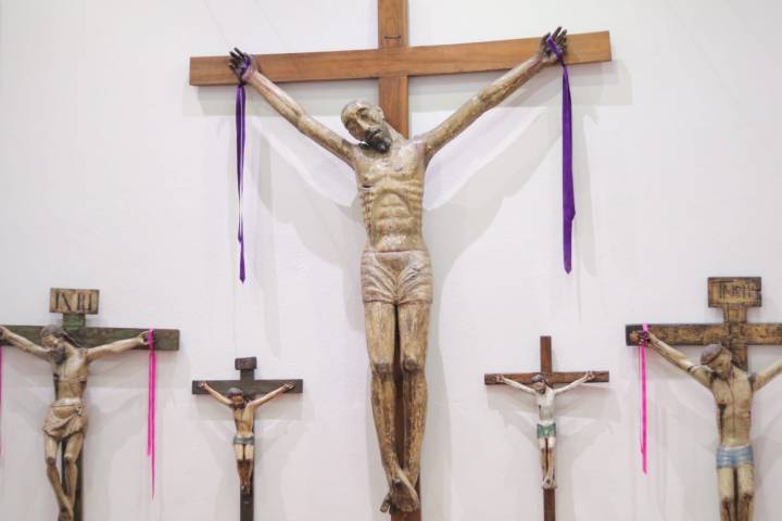 Compuesta por más de 100 cristos de la época colonial, de diferentes estilos y materiales, la colección de esculturas integra en su mayoría piezas que representan a Cristo en la cruz, lo que permite apreciar una gran variedad de tipologías, materiales y el... Ver más...