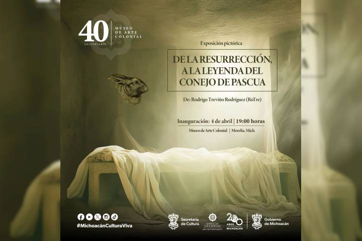 NOTICIAS 03/04/2024 Descubre la leyenda del conejo de Pascua en esta exposición pictórica en el MacolEn el marco de la celebración de la Semana Santa, la Secretaría de Cultura de Michoacán (Secum) invita a la inauguración de la exposición pictórica De la Resurrección, a la leyenda del conejo de Pascua, mañana jueves 4 de abril en el Museo de Arte Colonial (Macol) a partir de las 19:00 horas.