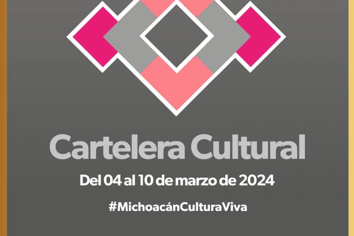 NOTICIAS 04/03/2024Expos, talleres, cine y más en la cartelera cultural de esta semana No te pierdas de una semana cultural en Michoacán del 4 al 10 de marzo. Habrá nuevas exposiciones, talleres, conversatorios, conferencias, proyecciones de cine y eventos especiales para conmemorar el Día Internacional de la Mujer.