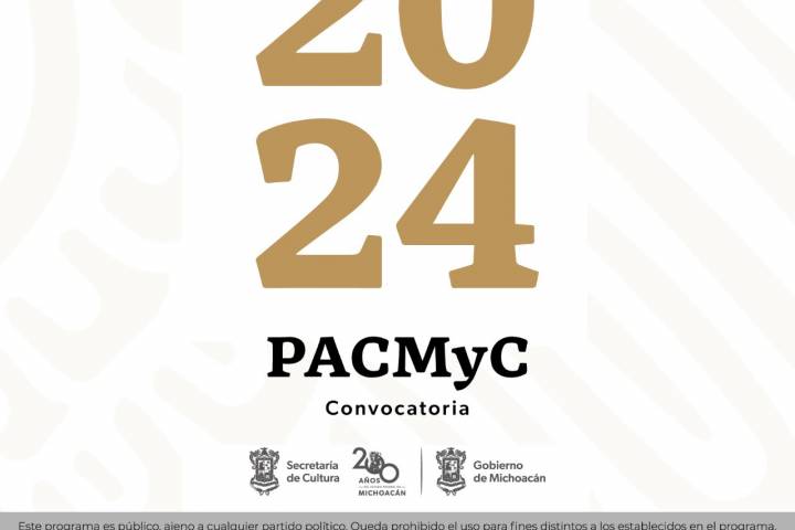NOTICIAS 06/03/2024 Abren convocatoria para proyectos culturales comunitariosLas personas portadoras de la cultura popular que habiten en localidades del ámbito rural, urbano o mixto en Michoacán y que, de forma colectiva tengan interés en desarrollar un proyecto cultural comunitario, podrán inscribirse en el Programa de Apoyos a las Culturas Municipales y Comunitarias (Pacmyc).