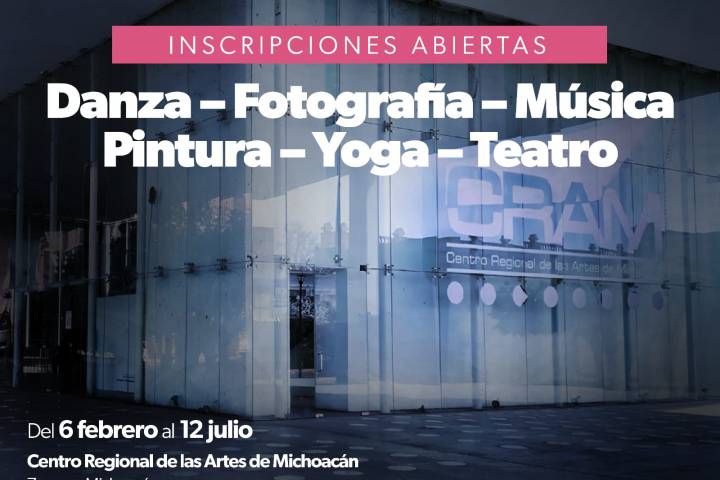 NOTICIAS 04/02/2024InscrÃbete a los talleres artÃsticos del CRAM y aprovecha tus tardes¿Vives en la Región Zamora y quieres aprender o mejorar en danza, fotografÃa, piano, teatro, yoga, dibujo y/o pintura? los talleres del Centro Regional de las Artes (CRAM) son para ti.