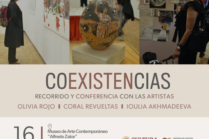 NOTICIAS 12/02/2024Tres mujeres artistas te invitan a un recorrido por su obra en el MacazEste 16 de febrero, a las 12 horas, acompaña a Olivia Rojo, Coral Revueltas y Ioulia Akhmadeeva, en un recorrido que ofrecerán en torno a la exposición de su autorÃa "Coexistencias", que la SecretarÃa de Cultura de Michoacán presenta en el Museo de Arte Contemporáneo Alfredo Zalce (Macaz).