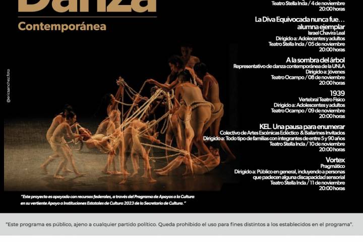 NOTICIAS 01/11/2023Secum anuncia funciones de Muestra de Danza ContemporáneaCon el objetivo de acercar a las personas experiencias sensibles, creativas y lúdicas a través de la danza, la Secretaría de Cultura de Michoacán (Secum) anuncia funciones dancísticas y talleres que se realizarán en los teatros Melchor Ocampo y Stella Inda de Morelia, en el marco de la XXIII Muestra Estatal de Danza Contemporánea.