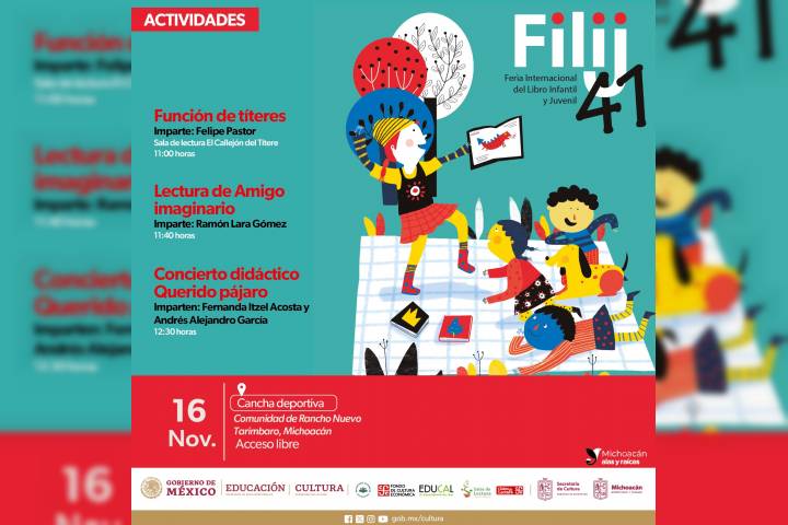 NOTICIAS 07/11/2023Secum anuncia Feria del Libro Infantil y JuvenilLa Secretaría de Cultura de Michoacán (Secum) anuncia la Feria Internacional del Libro Infantil y Juvenil (FILIJ), que se realizará en los municipios de Lázaro Cárdenas, Puruándiro, Tzitzio, Tacámbaro, Tarímbaro y Morelia, con apoyo del Programa Nacional de Salas de Lectura, Clubes de Lectura, un Semillero Creativo, Alas y Raíces y el Sistema DIF estatal.